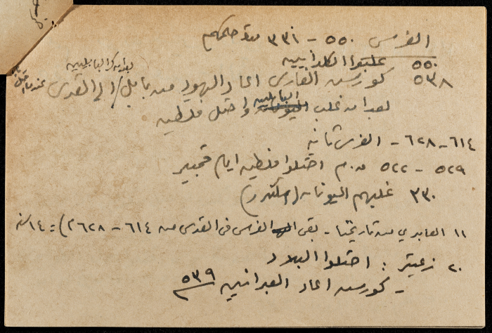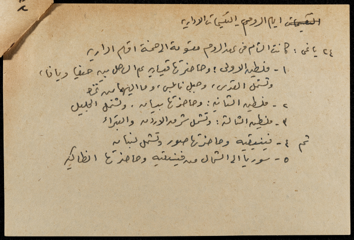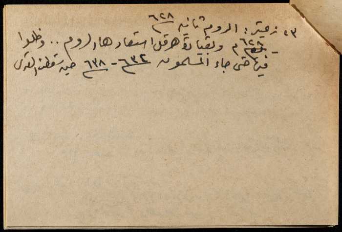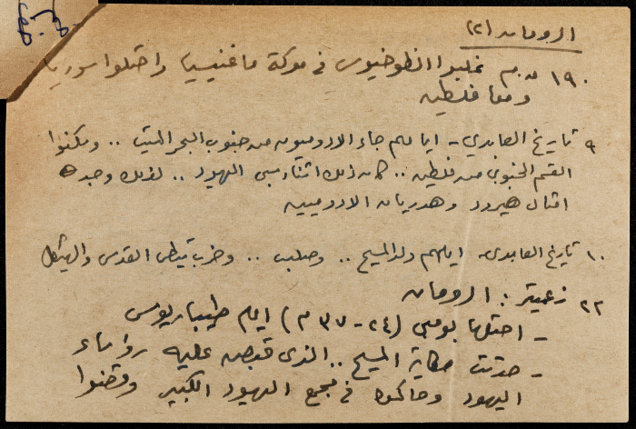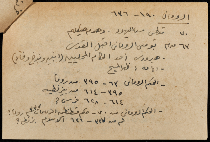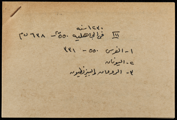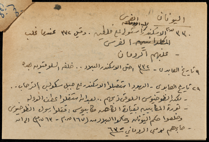 A hand-written paper clipping in Arabic, it consists of the history of Pre-Islamic Arabia, Greeks, Persians, and Romans.