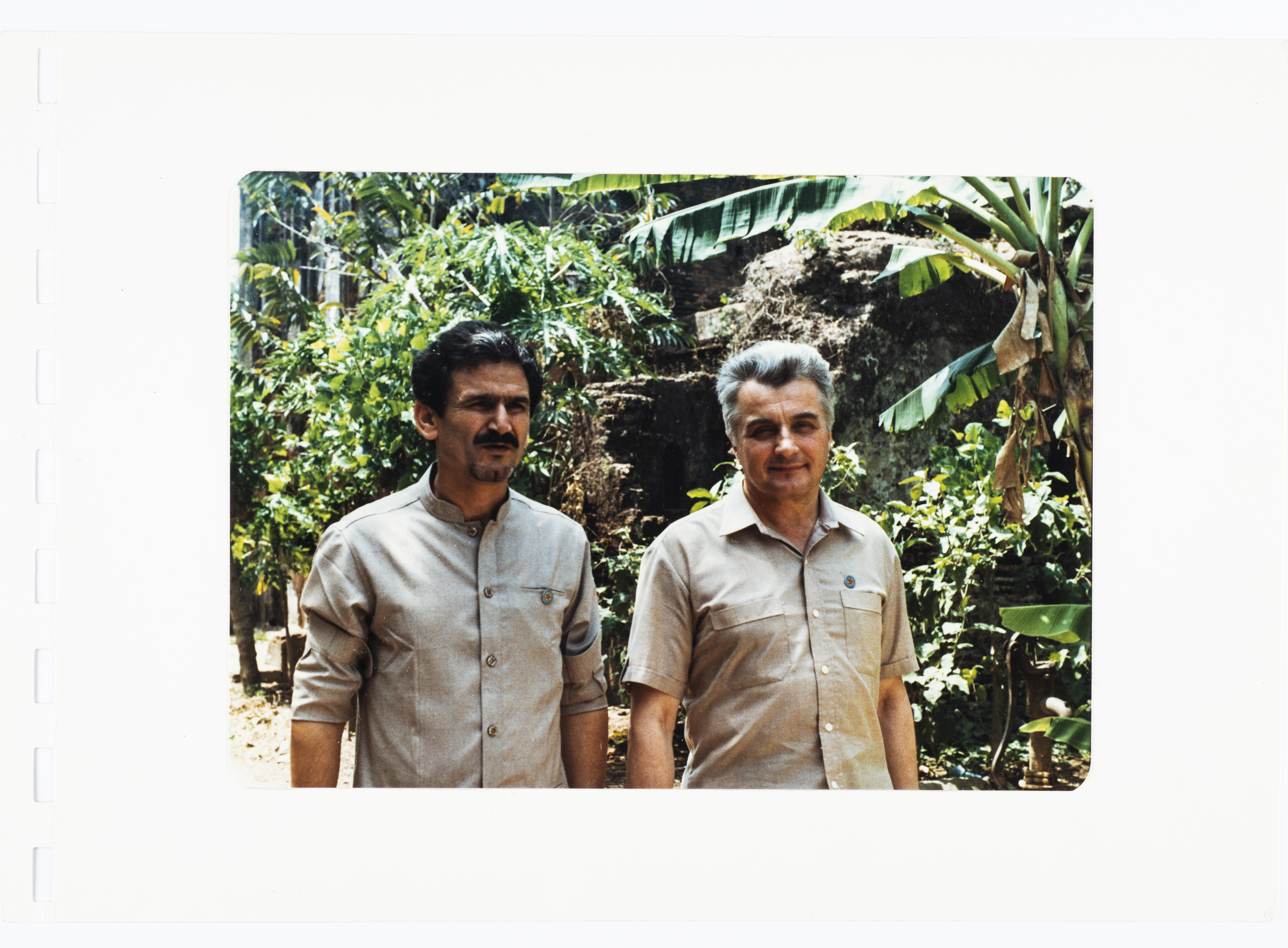 صورة ملونة يظهر فيها محمود شقير برفقة أحد أعضاء الحزب الشيوعي في الاتحاد السوفيتي خلال حضور مؤتمر الحزب الشيوعي في بنغلادش عام 1988.