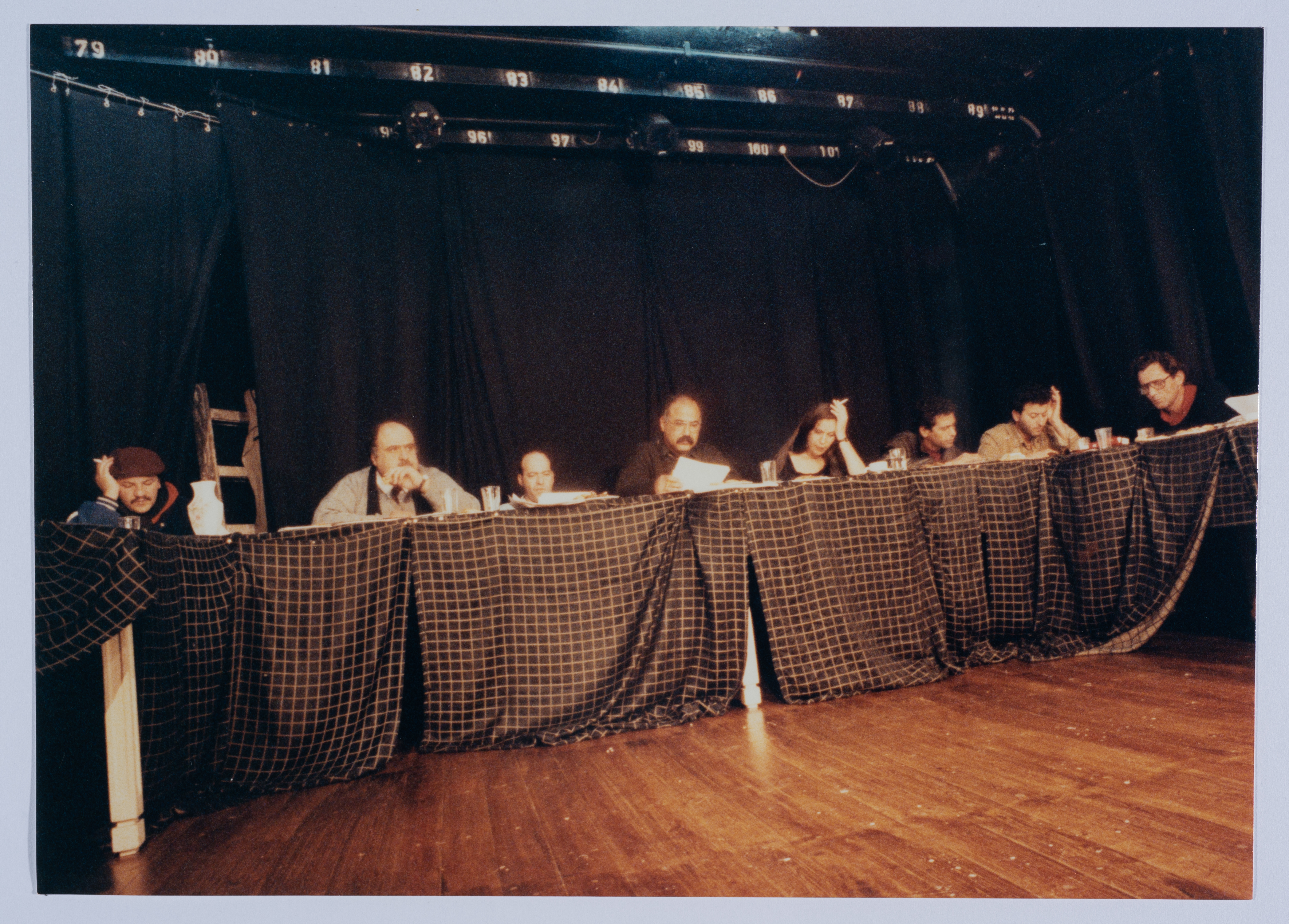 مؤتمر صحفي في مسرح القصبة، القدس"، صورة من مجموعة مسرح القصبة، 1994"