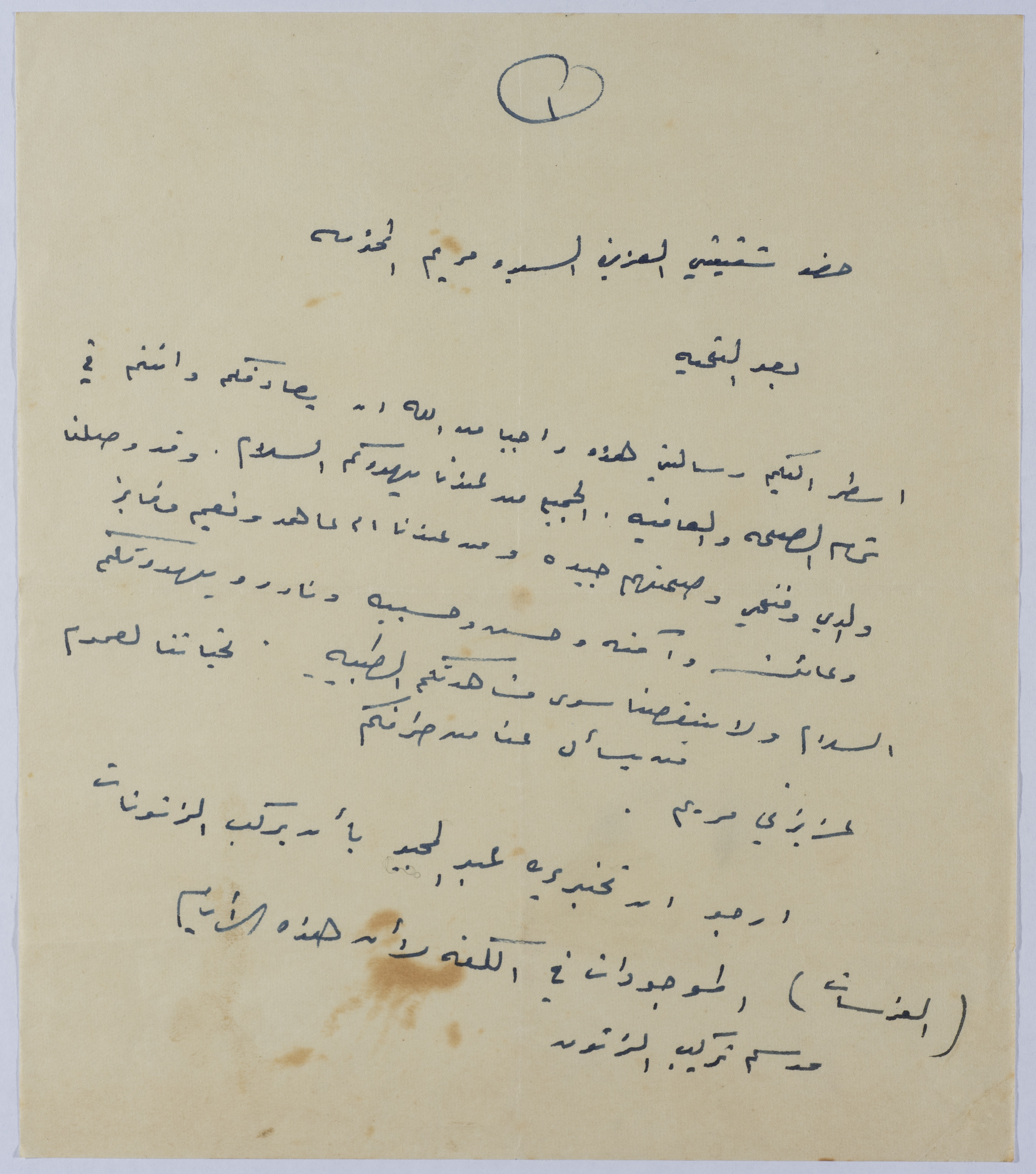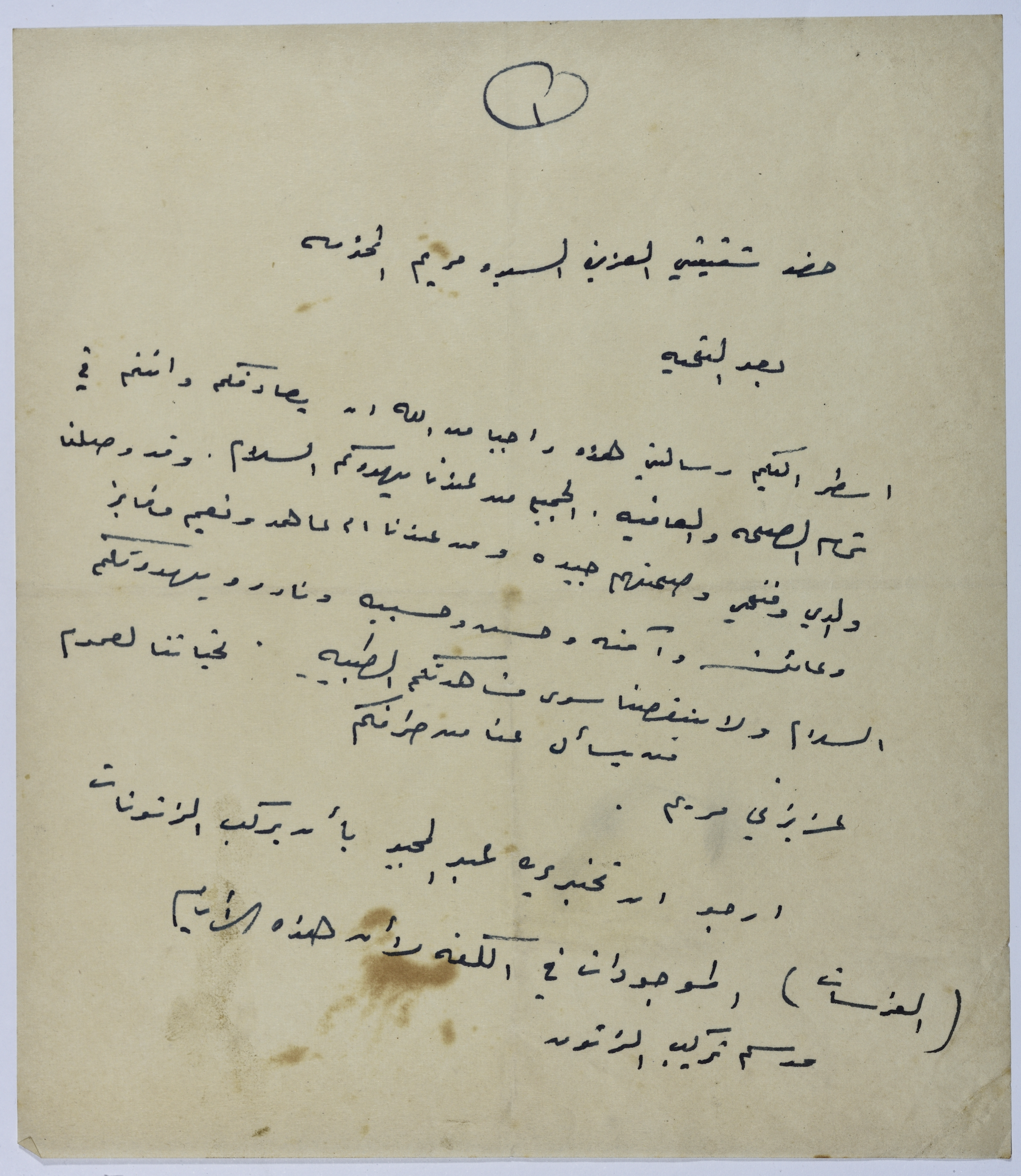 وثيقة تاريخية تعود لفترة الحكم الاردني في الضفة الغربية، الوثيقة تتضمن رسالة من السيد طارق عبد العزيز إلى أخته مريم يطلب فيها من أخته، أن تقوم هي وزوجها برعاية أرضه ورعاية أشجار الزيتون الموجودة في كرمه، ويخبرها في الرسالة وصول والده واخيه عنده. يتضح من الرسالة أن السيد طارق كان مسافرا في بلد ما وأنه طلب من أخته العناية في أرضه في قرية برهام، الرسالة تحمل توقيع السيد طارق عبد العزيز