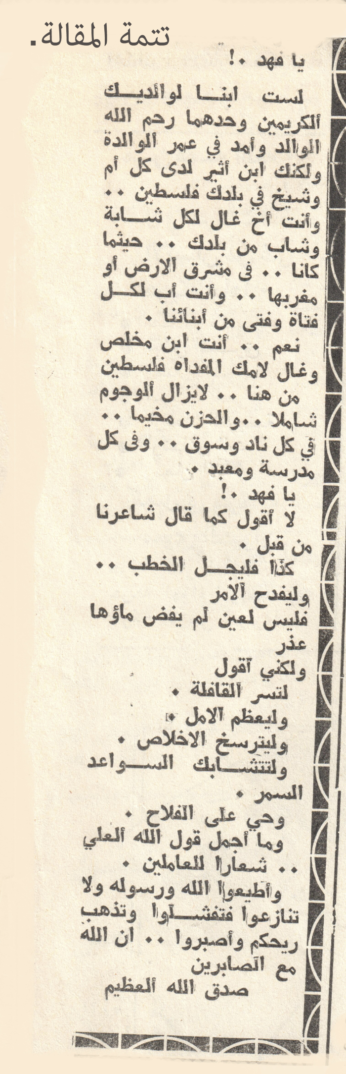 "مقالة بعنوان:"سلام عليك يا أبا خالد