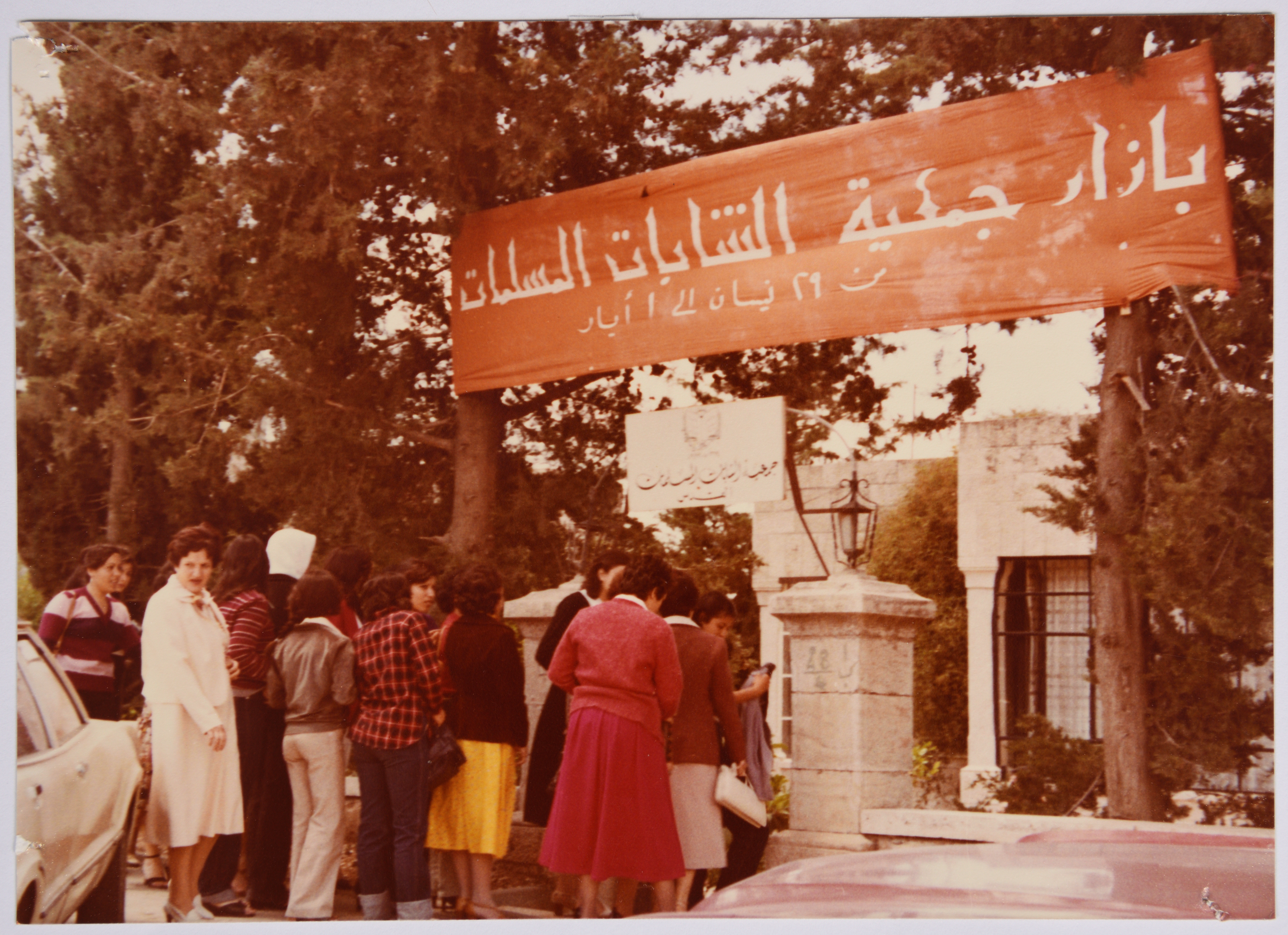 صورة ملونة من فعاليات بازار في جمعية الشابات المسلمات. ألتقطت الصورة على مدخل مبنى الجمعية.