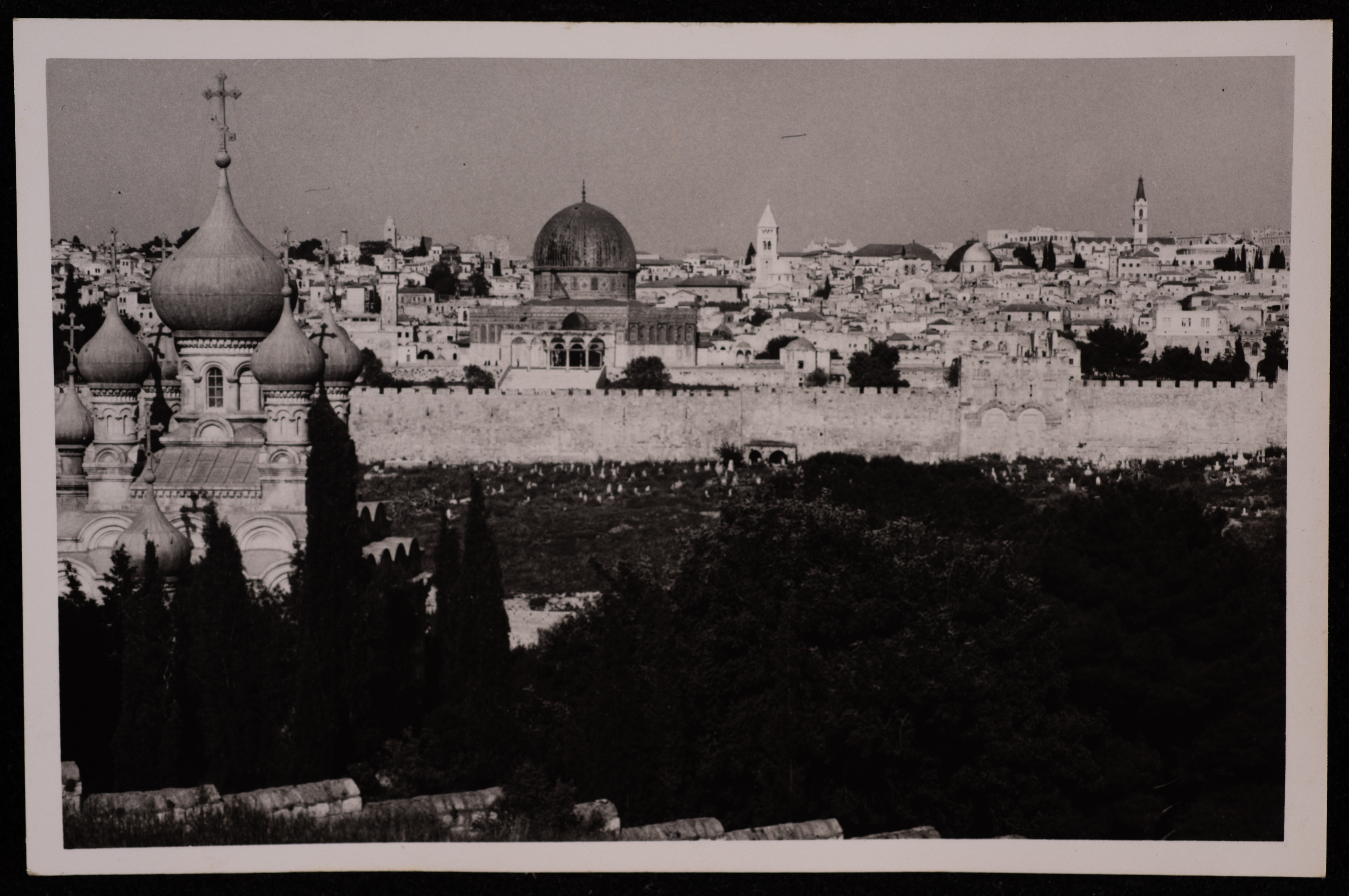 صورة التقطها المصور يوسف البينا ما بين عشرينيات وثلاثينيات القرن العشرين، تظهر فيها قبة الصخرة ومقطع من سور مدينة القدس من الجهة الشرقية حيث التقطت من جهة جبل الزيتون.