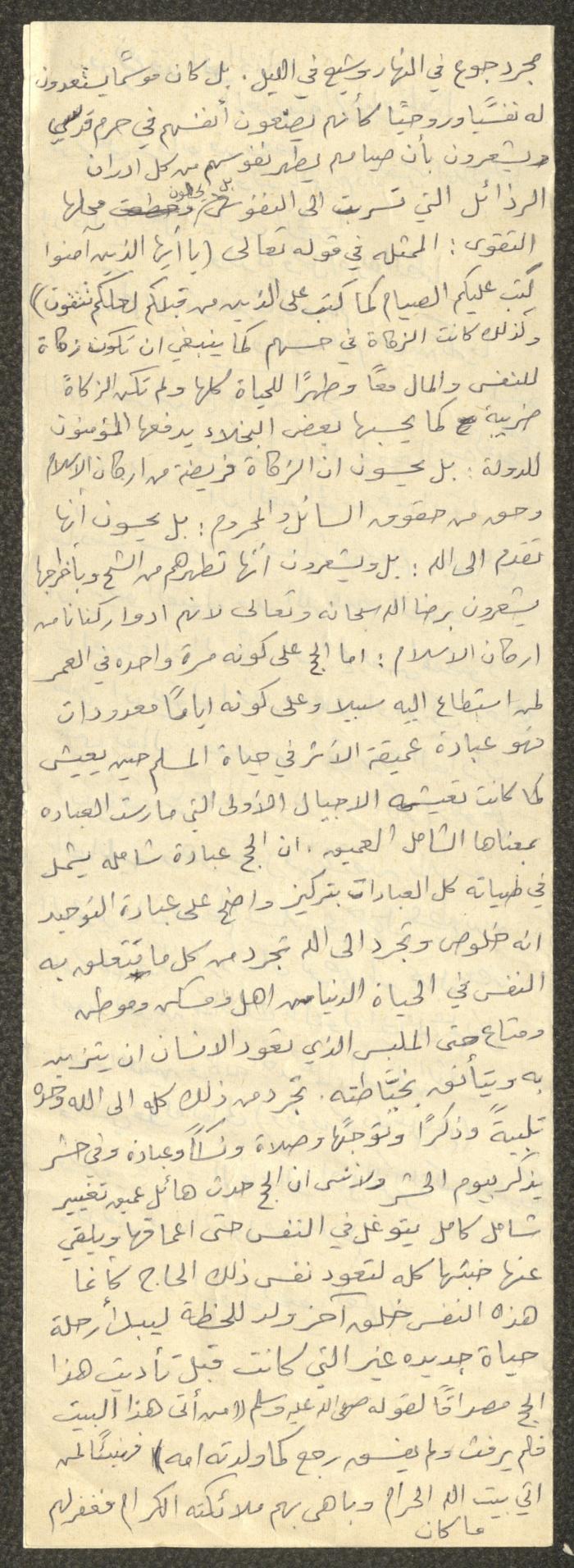 "مفهوم العبادة بين الماضي والحاضر"، خطبة الجمعة لمعروف اشتية، ثمانينيات القرن العشرين