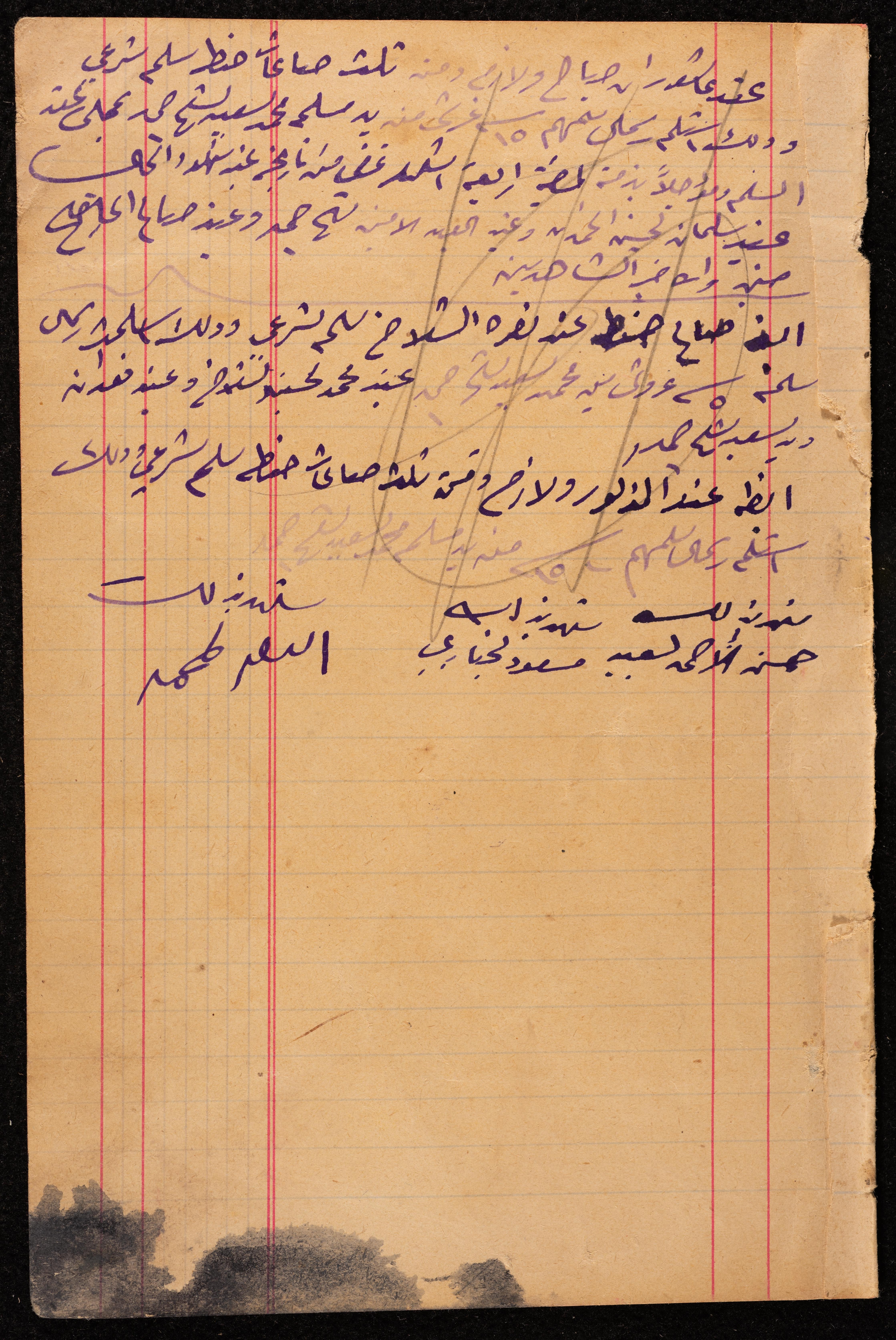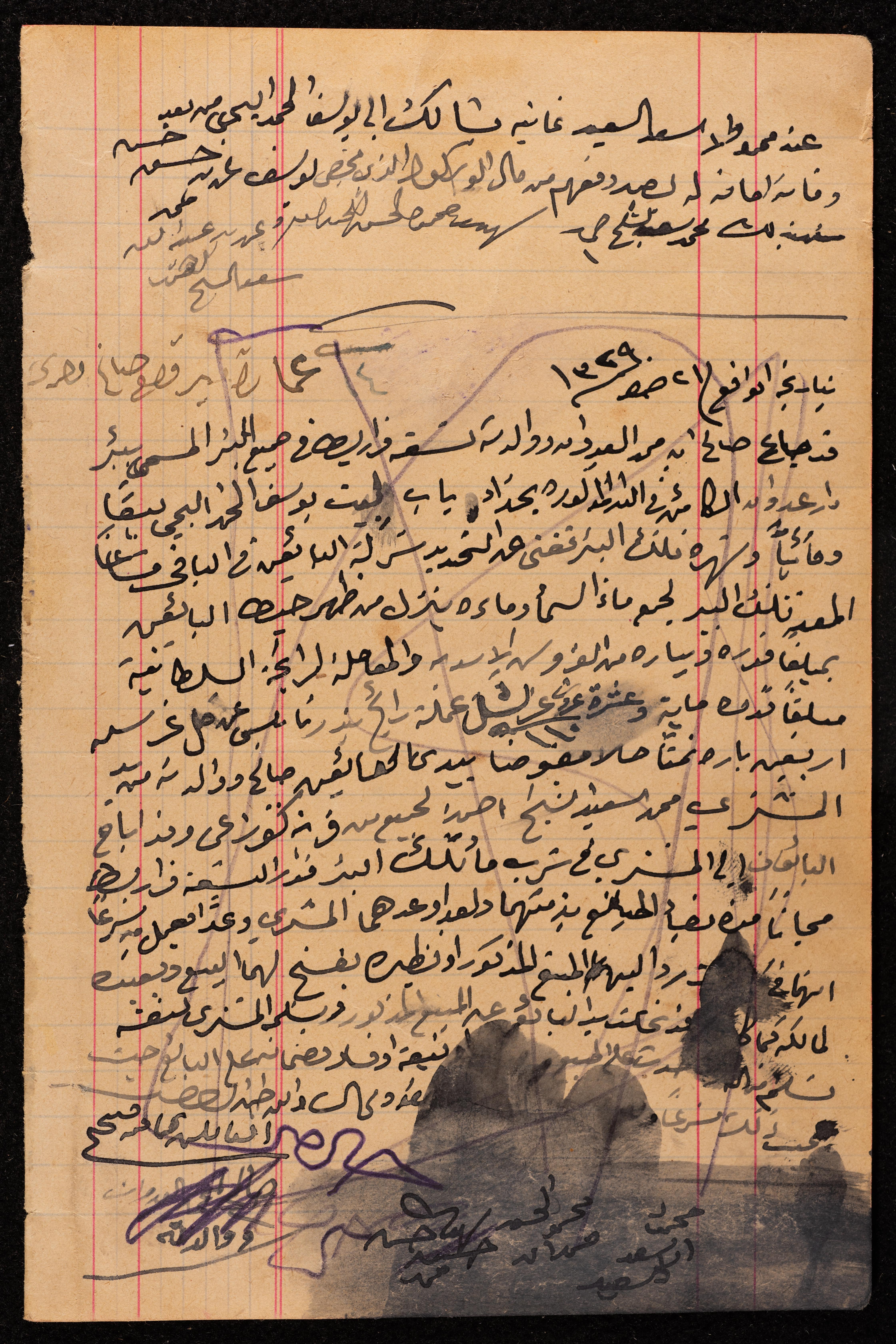 Handwritten on 21 of Safar 1329 AH, corresponding to 19 of September 1922 AD, this archival item shows a well "Dar Udwan Well" sale agreement between the seller Saleh Mohammad al-Udwan and the buyer Mohammad Saeed Sheikh Ahmad from Kafr Ra'i.