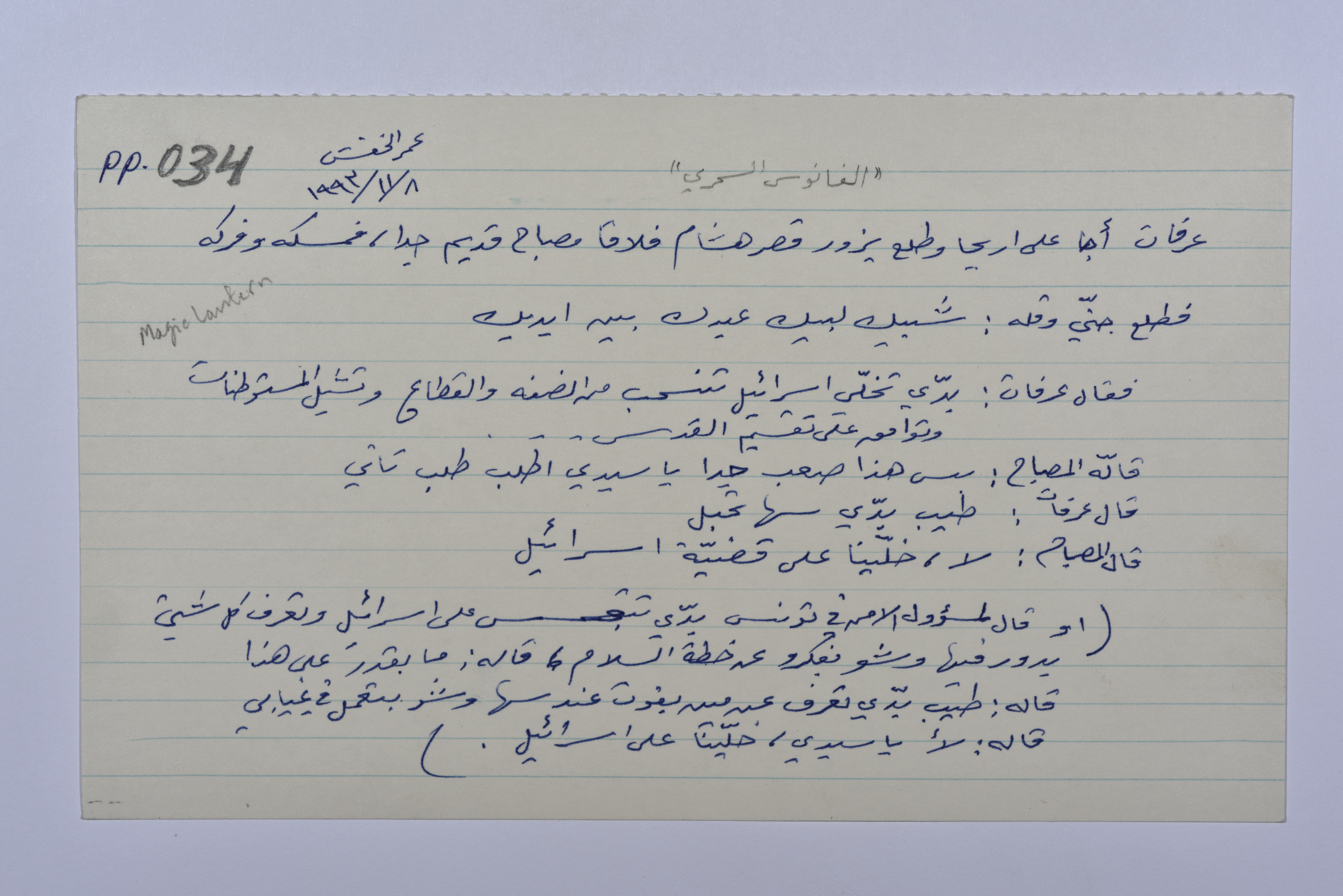 بطاقة وُثِّق عليها نكتة بعنوان "الفانوس السحري"